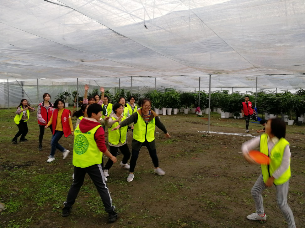同路人志愿者們在成都香草山示美園藝設計有限公司的苗圃基地拓展活動(dòng)